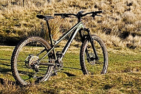 The first is a green/bronze coloured Ragley Mountain Bike with purple handle bar end caps and the second is a blue coloured Giant Fantom Mountain Bike.