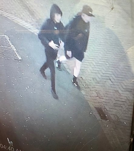The males pictured are described as being in their late teens/early to mid-20s, around 5ft 8in tall, of medium build, hair style/colour unknown due to hood and hat. Both wearing dark tops, one in shorts, the other in dark tracksuit style bottoms.