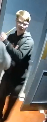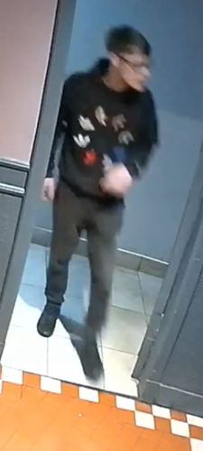 The second man, pictured below, is described as white, aged 18 to 25 years-old, wearing glasses, a black hooded top with an Adidas Original logo and black jogging bottoms.